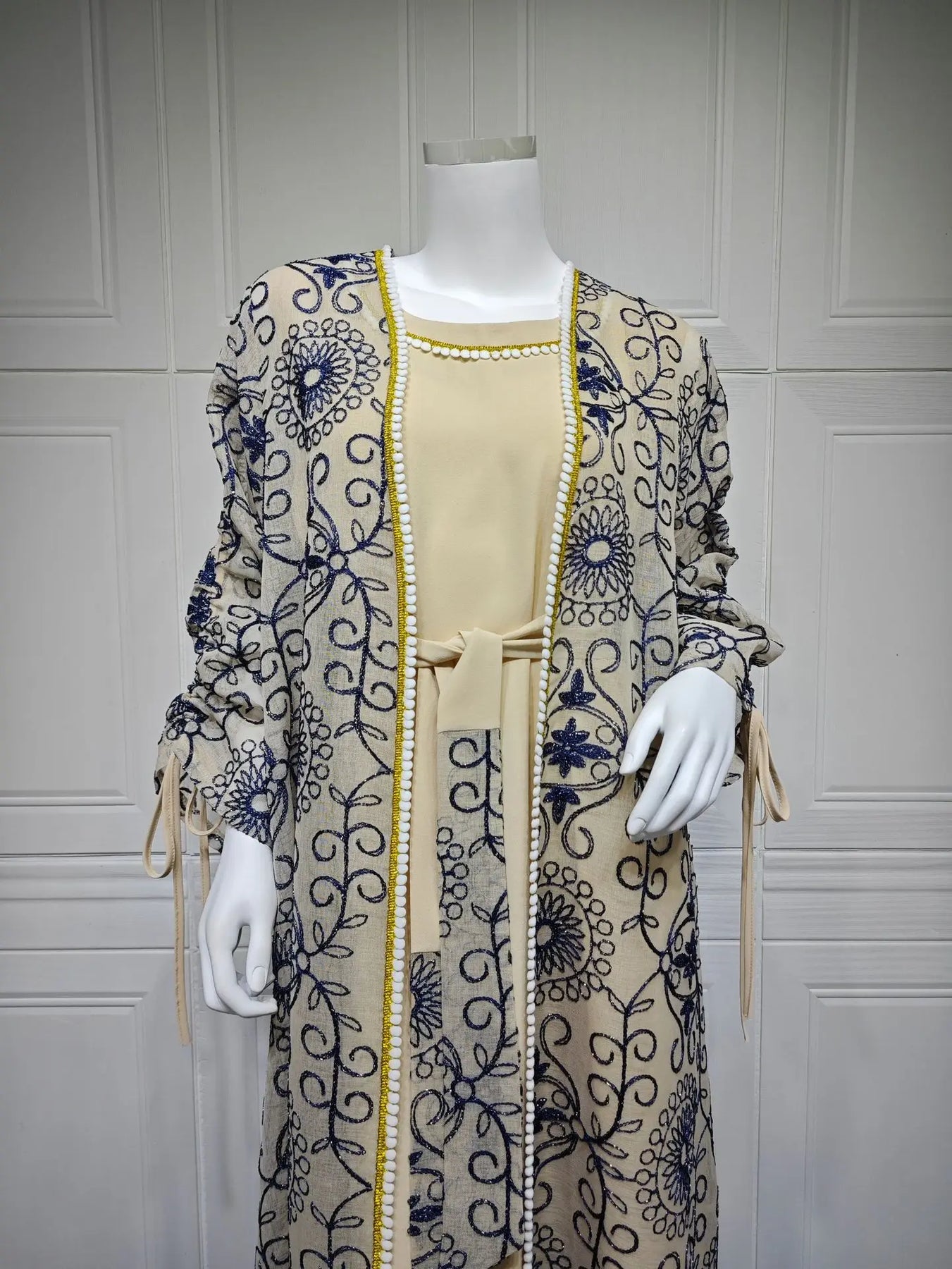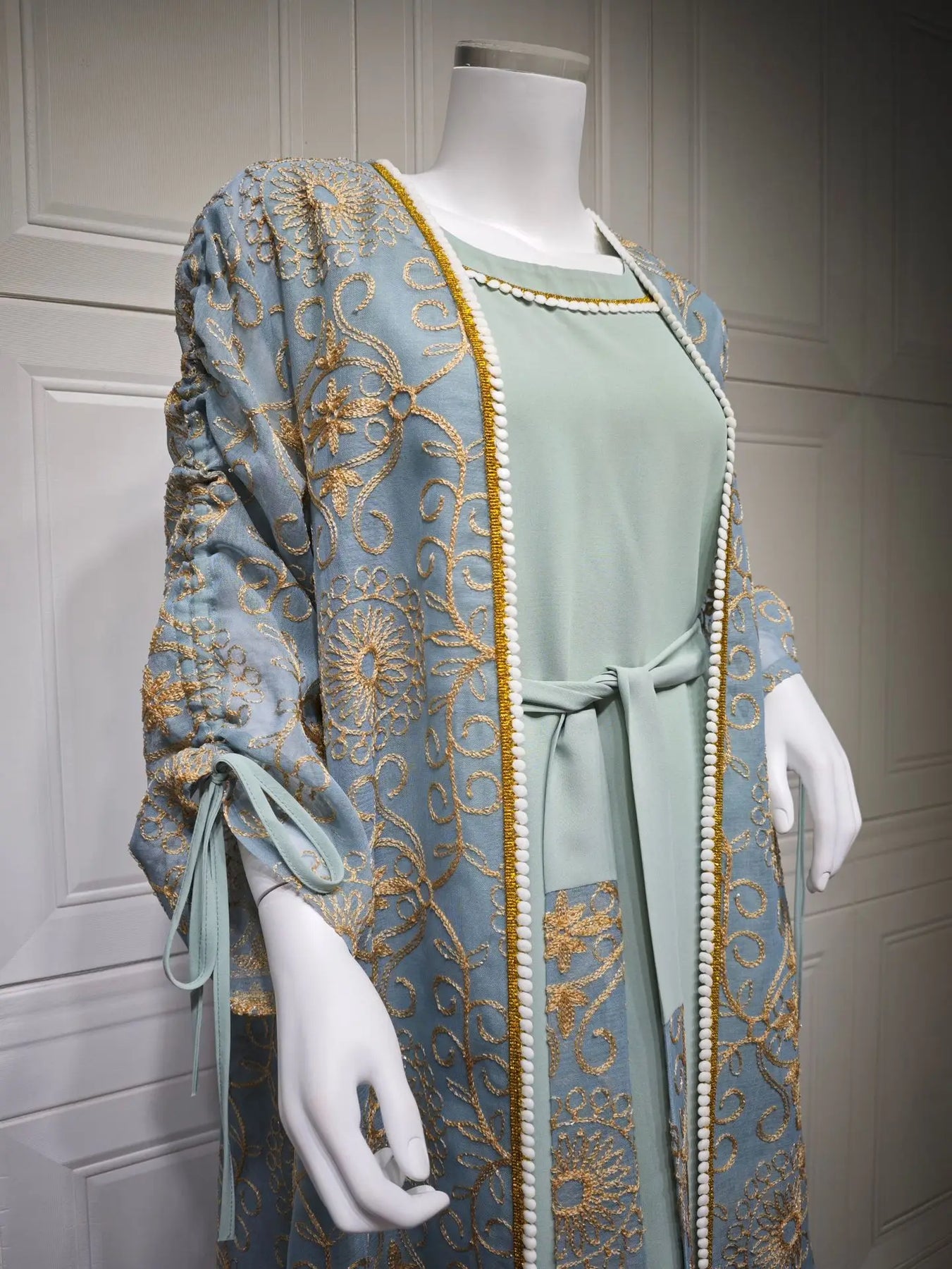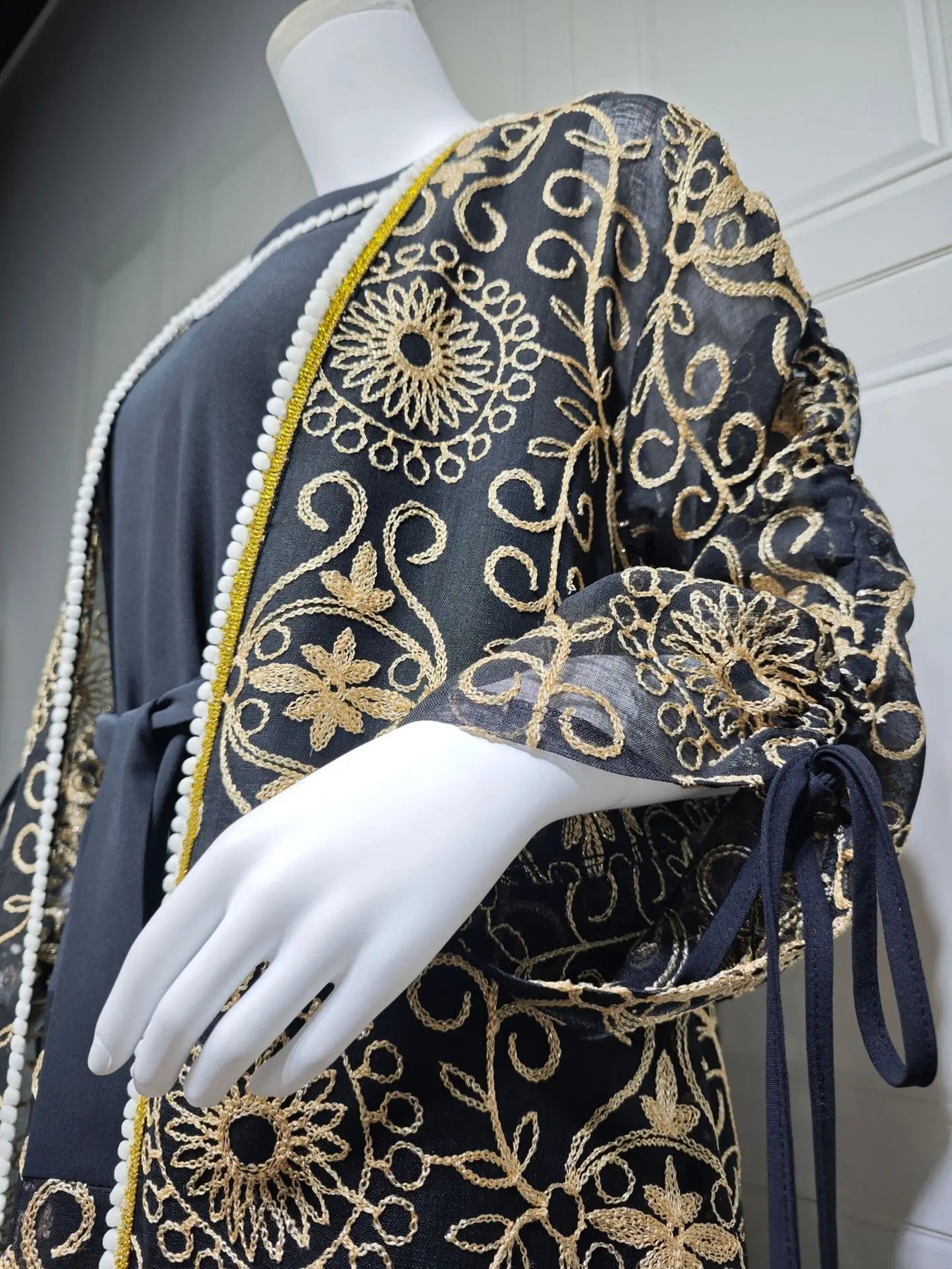 This beautifully crafted open abaya is designed to reflect timeless elegance with a graceful traditional touch. Made from a smooth woven fabric, it features a loose, flowing silhouette that offers both comfort and sophistication. Intricate embroidery details elevate the design, making it an ideal choice for festive occasions, cultural events, and special gatherings.